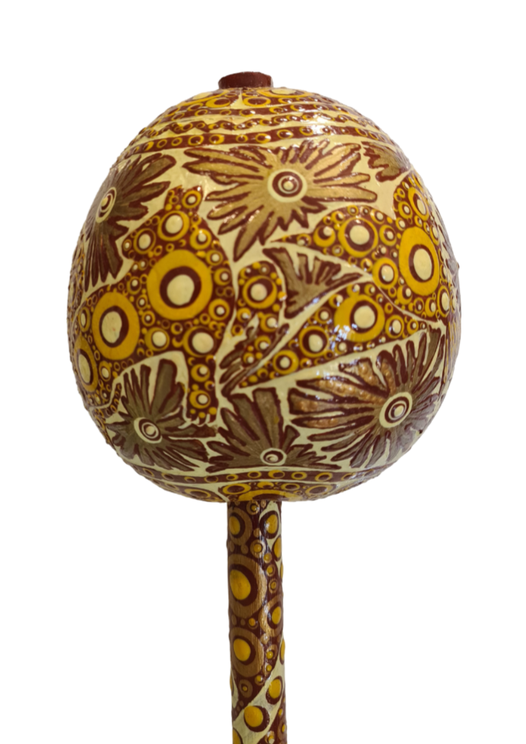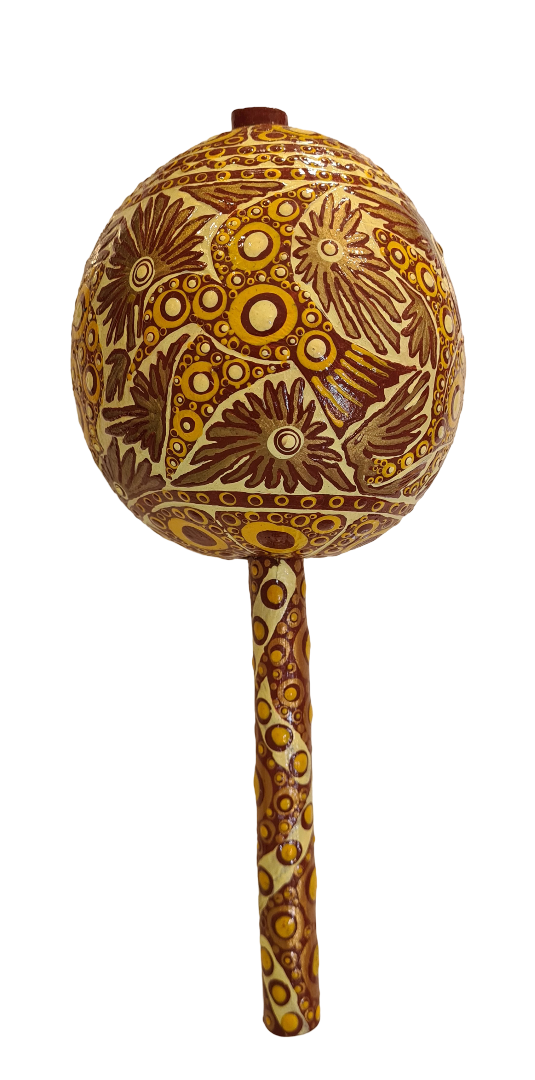 The colors of my work celebrate Mexico, trying to reflect the heart of Mexican culture – a blend between Huichol (brilliantly colored yarns pressed onto bees wax) and Alebrijes (brilliantly colored dot painted carved wooden animal figures). “Colores de Mi Corazon” (Colors of My Heart) is the name I chose for my work.